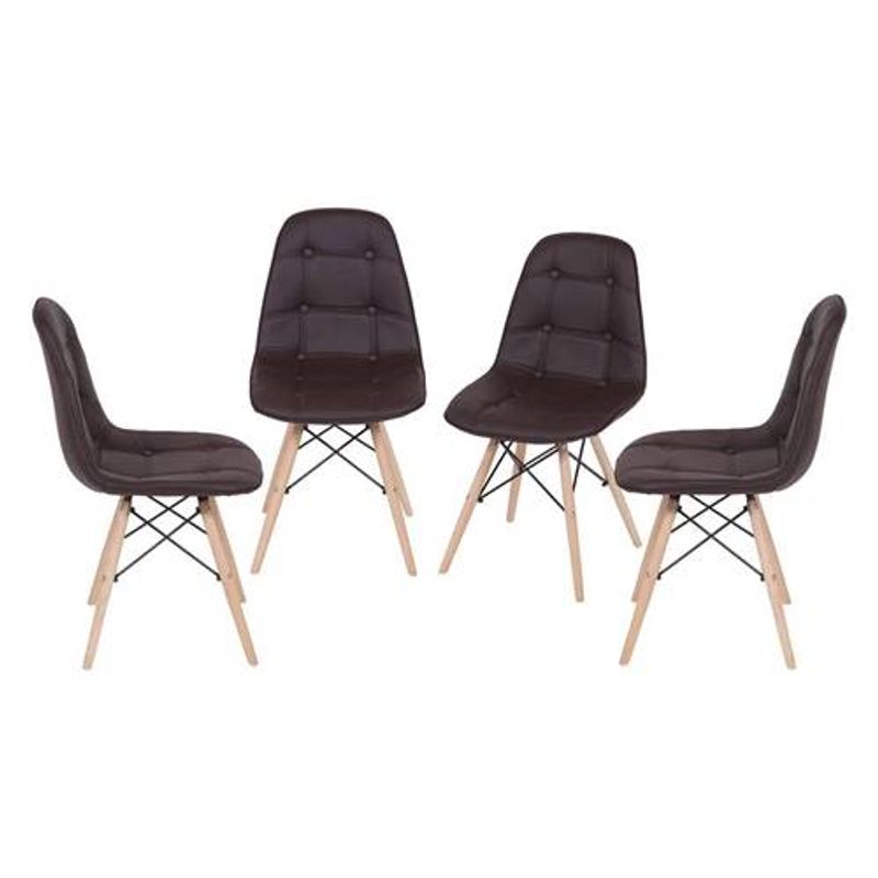 Kit com 4 Cadeiras Eames Botone Cafe Base de Madeira