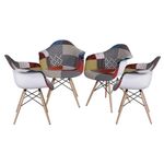 Kit com 4 Cadeiras Eames com Braco Base Madeira Patchwork - 64624
