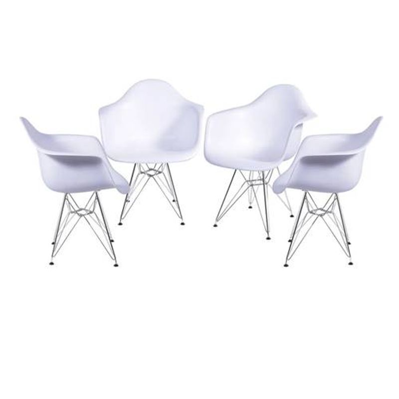 Kit com 4 Cadeiras Eames com Braco e Base Cromada na Cor Branca - 64605
