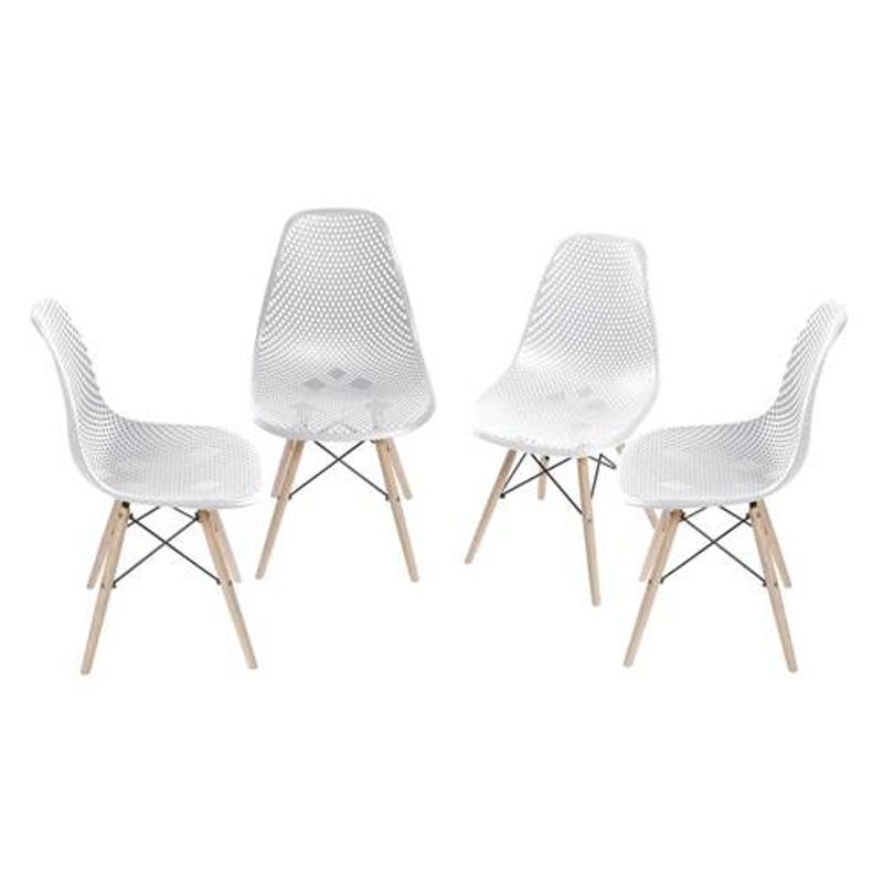 Kit com 4 Cadeiras Eames Furadinha Com Base de Madeira na Cor Branca