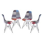 Kit com 4 Cadeiras Eames Patch Work Base Cromada