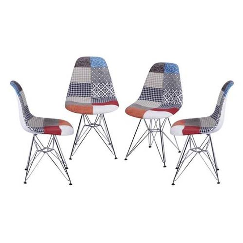 Kit com 4 Cadeiras Eames Patch Work Base Cromada - 64669