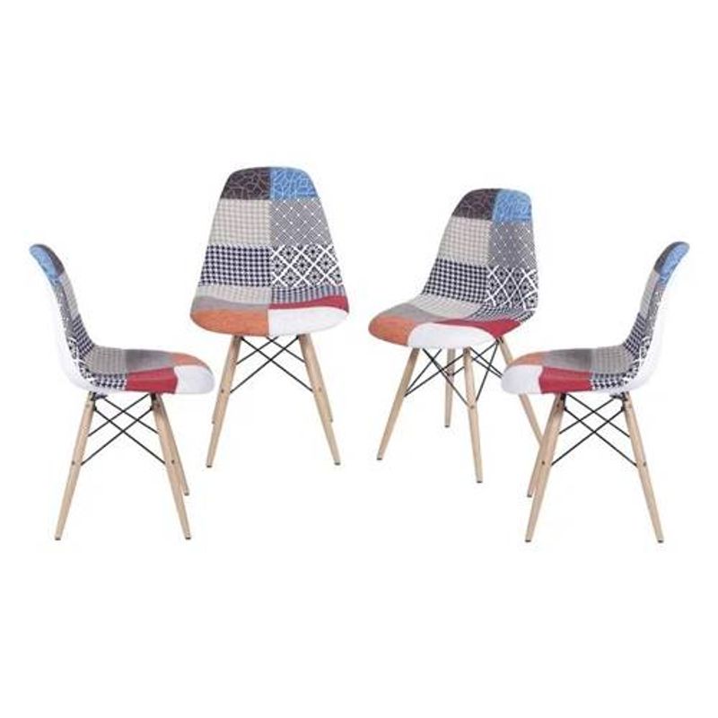 Kit com 4 Cadeiras Eames Patch Work Base de Madeira