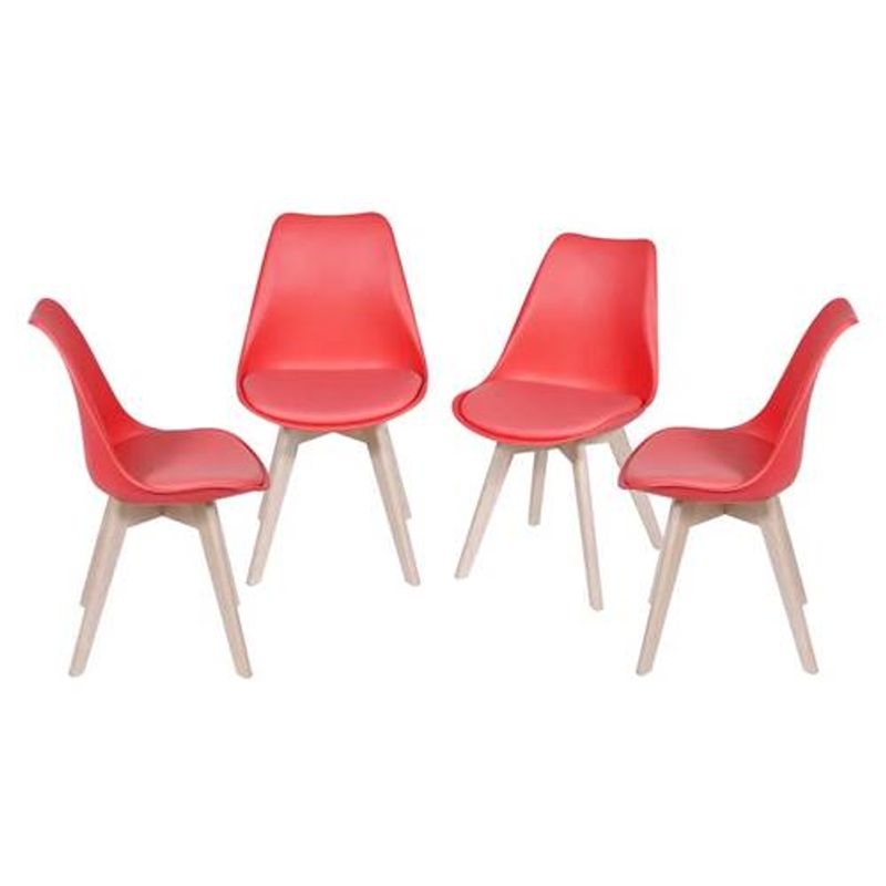 Kit com 4 Cadeiras Leda Eames PP Vermelha Base Madeira