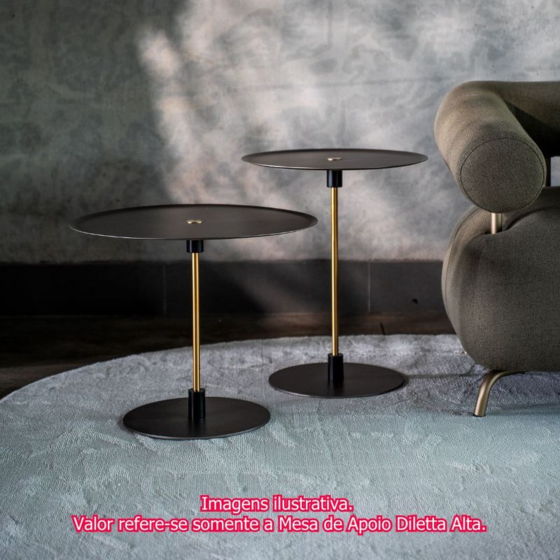 Apresentamos a Mesa de Apoio Alessia Alta, uma peça que transcende a funcionalidade para se tornar um elemento central de sofisticação em sua sala de estar. Com um design que combina maestria artesanal e estética contemporânea, a Alessia Alta é um convite à contemplação e ao bom gosto.Seu tampo e base redondos, impecavelmente acabados em uma pintura em laca na cor Bronze, emanam um brilho sutil que reflete a luz de forma singular, adicionando profundidade e calor ao ambiente. A haste em latão, um toque de requinte clássico, contrasta harmoniosamente com o suporte do tampo e da haste na cor preta, criando uma composição visual impactante. A base de metal pintado assegura estabilidade e durabilidade, complementando a leveza aparente de sua estrutura.A Mesa de Apoio Alessia Alta é perfeitamente concebida para compor com a Mesa de Apoio Alessia Baixa, criando um conjunto dinâmico e visualmente interessante. Juntas, elas oferecem múltiplos níveis e superfícies de apoio, ideais para dispor livros, obras de arte, ou simplesmente para apoiar uma taça de vinho em um momento de relaxamento.Com a Mesa de Apoio Alessia Alta, você não adquire apenas um móvel, mas uma declaração de estilo, um convite à beleza e à funcionalidade elevada.