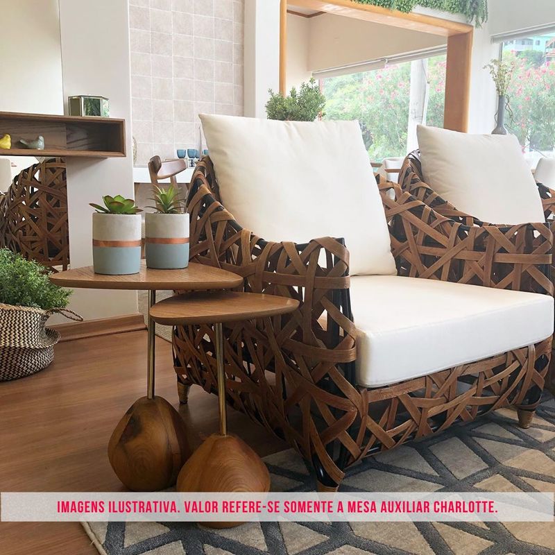 A Mesa Auxiliar Charlotte Baixa é a expressão do design elegante e atemporal, criada para compor ambientes com sofisticação e equilíbrio visual. Sua base em madeira na cor Off White traz leveza e delicadeza ao conjunto, criando uma sensação de fluidez no ambiente. A haste com acabamento Champagne acrescenta um toque de requinte, refletindo a luz de maneira sutil e sofisticada, como um detalhe de joalheria que valoriza toda a peça.O tampo em lâmina de madeira na tonalidade Carvalho Off White complementa o design com um aspecto natural e acolhedor, oferecendo uma superfície funcional e elegante para apoiar objetos decorativos, livros ou pequenas bandejas. Sua altura mais baixa permite que ela se encaixe perfeitamente ao lado de sofás, poltronas ou camas, proporcionando praticidade sem abrir mão da estética.Quando harmonizada com a Mesa Auxiliar Charlotte Alta, cria uma composição de alturas que enriquece o espaço, resultando em um visual dinâmico e contemporâneo. O conjunto oferece não apenas funcionalidade, mas também um ponto de destaque no décor, tornando a ambientação mais convidativa e sofisticada.Disponível em outros acabamentos. Consulte-nos!