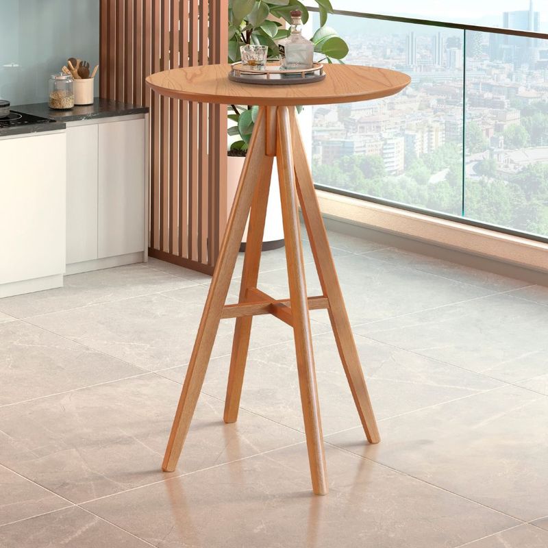• Estrutura em Madeira Maciça: Os pés em madeira sólida proporcionam estabilidade máxima e uma longa vida útil ao móvel, mantendo a robustez necessária para uma mesa alta.