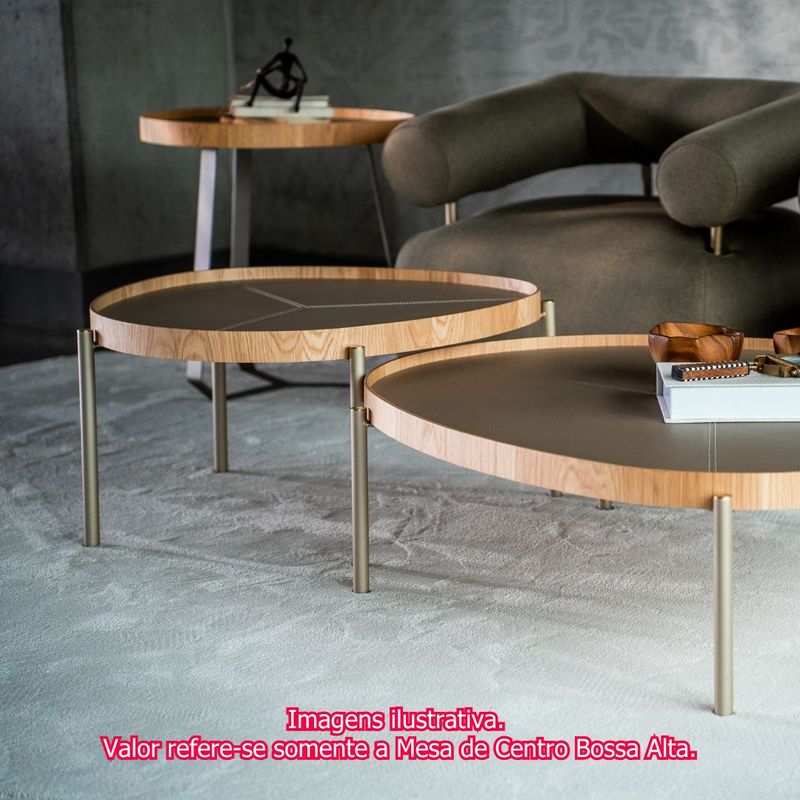 A Mesa de Centro Fortaleza Alta é a peça perfeita para quem busca combinar funcionalidade e estilo em sua sala de estar. Com um design que exala sofisticação e aconchego, ela se destaca por seus materiais de alta qualidade e acabamento impecável.O tampo orgânico da Mesa Fortaleza Alta é um dos seus maiores atrativos. Confeccionado em lâmina de madeira na cor carvalho, ele confere um toque natural e acolhedor ao ambiente. O centro do tampo é elegantemente revestido em recouro na cor fendi, adicionando uma textura diferenciada e um contraste sutil que enriquece visualmente a peça. Essa combinação de materiais não só garante durabilidade, mas também cria uma estética refinada que se adapta a diversos estilos de decoração.Os pés em aço carbono pintado na cor champagne complementam o design com leveza e modernidade. A tonalidade champagne, um dourado suave e discreto, harmoniza perfeitamente com o carvalho e o fendi, elevando o nível de elegância da mesa. A estrutura em aço carbono assegura a estabilidade e resistência necessárias para o uso diário.A Mesa de Centro Fortaleza Alta é ideal para ser combinada com a Mesa de Centro Fortaleza Baixa. Juntas, elas formam um conjunto dinâmico e visualmente interessante, permitindo criar diferentes níveis e arranjos na sua sala de estar. Essa dupla oferece flexibilidade para acomodar objetos decorativos, livros ou servir de apoio para bebidas e petiscos, tornando o ambiente ainda mais prático e convidativo.Em suma, a Mesa de Centro Fortaleza Alta é um investimento em design, qualidade e conforto, projetada para ser o centro das atenções na sua sala de estar, elevando o padrão estético e o bem-estar do seu lar.Disponível em outros acabamentos. Consulte-nos!