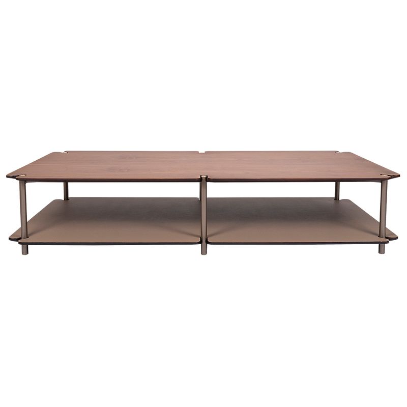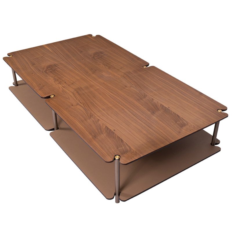 A Mesa de Centro Ravena é uma peça de destaque que une sofisticação e funcionalidade, ideal para compor ambientes elegantes e contemporâneos. Com design equilibrado e materiais de alta qualidade, ela se torna o ponto focal da sala de estar, proporcionando charme e praticidade ao espaço.Seu formato retangular com 160 cm de largura oferece ampla superfície para dispor objetos decorativos, livros, bandejas e outros elementos que enriquecem o décor. O tampo superior é laminado em madeira natural na cor Nogueira, trazendo o aconchego da madeira com um acabamento refinado e atemporal. Já o tampo inferior, em laca bronze, adiciona profundidade visual e um toque de brilho sutil que valoriza a composição.As hastes em aço carbono na cor metalizada bronze conferem estrutura firme e um visual moderno, com linhas retas que reforçam a estética contemporânea. O toque final fica por conta das ponteiras em latão, um detalhe que revela cuidado artesanal e eleva o nível de sofisticação da peça.A Mesa Ravena é perfeita para salas amplas, compondo com sofás, poltronas e tapetes com elegância. Pode também ser harmonizada com móveis em tons terrosos, dourados ou neutros, criando ambientes acolhedores e com identidade marcante.