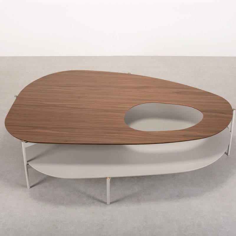 Apresentamos a Mesa de Centro Sorella, uma peça que une forma orgânica, funcionalidade e sofisticação em um só design.Com tampo superior em laminado de madeira Nogueira, essa mesa exibe uma textura natural e quente que contrasta elegantemente com o nicho vazado de formato orgânico