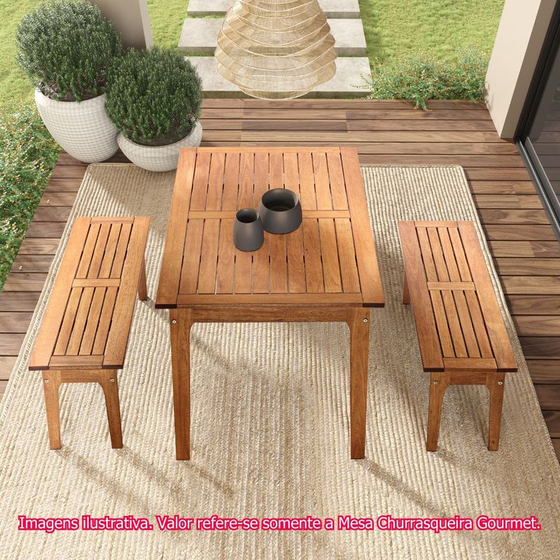 A Mesa Churrasqueira Gourmet é a escolha ideal para quem busca funcionalidade, resistência e um visual elegante para áreas externas. Fabricada em Madeira de Eucalipto, de alta qualidade, recebe acabamento Stain na sofisticada tonalidade Jatobá, que realça os veios naturais da madeira e harmoniza perfeitamente com diferentes estilos de decoração.O acabamento Stain é especialmente desenvolvido para uso em ambientes externos, pois penetra profundamente nas fibras da madeira, formando uma camada protetora que repelente à água e cria uma barreira contra os raios UV, prevenindo o desgaste e o desbotamento causados pela exposição ao sol. Além disso, sua composição conta com propriedades inseticidas e fungicidas, que ajudam a proteger a peça contra o ataque de cupins e a proliferação de fungos, mantendo sua integridade por muito mais tempo.Com dimensões generosas de 160x80cm, a mesa oferece amplo espaço para acomodar alimentos, utensílios e reunir a família e os amigos em momentos de descontração ao ar livre. Sua robustez garante maior durabilidade, resistindo às variações climáticas e mantendo sua beleza e funcionalidade por anos.A Mesa Churrasqueira Gourmet une resistência, proteção e estilo, sendo perfeita para tornar o seu espaço gourmet ainda mais prático, acolhedor e convidativo.