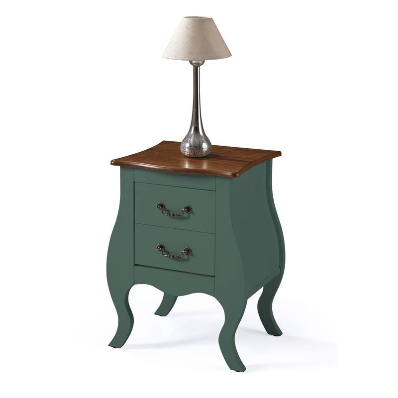 Mesa de Cabeceira 2 Gavetas Elegance Verde Musgo Tampo Imbuia 50cm - 59858