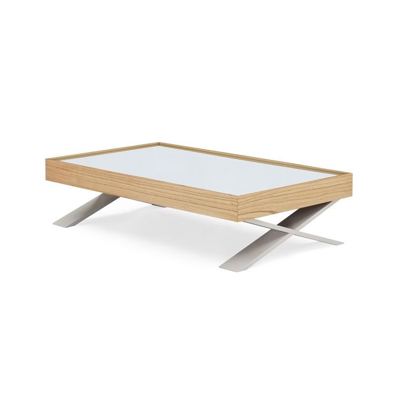 Mais do que um simples móvel de apoio, esta mesa de centro é um elemento de design que organiza o espaço e convida à interação. Ela se torna o ponto focal da sua sala de estar, refletindo seu bom gosto e atenção aos detalhes. A moldura em madeira clara adiciona um toque de calor e naturalidade, enquanto o tampo clean espelhado, contribui para a sensação de amplitude e leveza no ambiente.