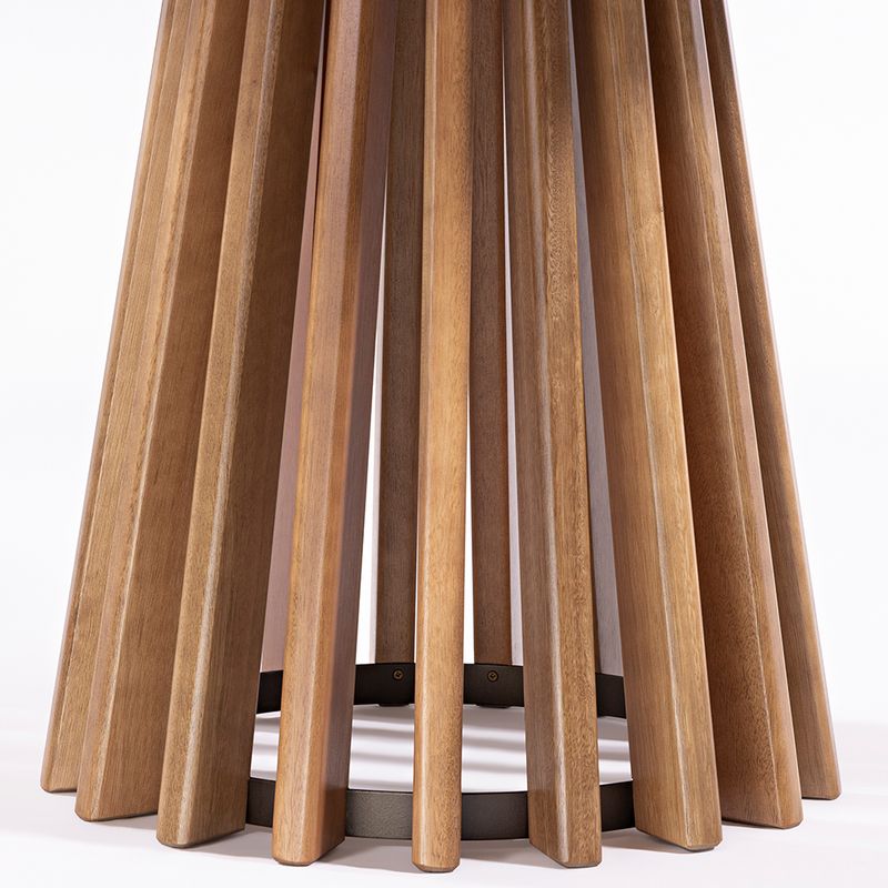 A Mesa de Jantar Brisa é uma peça que une elegância, originalidade e qualidade em cada detalhe. Com um design diferenciado, ela se destaca como um verdadeiro elemento de decoração, ideal para ambientes que valorizam estilo e bom gosto.O tampo da mesa apresenta um formato sextavado com bordas encabeçadas, que imprime personalidade e um toque contemporâneo ao móvel. Produzido em MDF laminado, o tampo oferece resistência e acabamento impecável, ideal para o uso no dia a dia sem perder a sofisticação.Sua base em formato cônico é composta por ripas verticais de madeira maciça, que garantem estabilidade e um visual imponente. O destaque fica por conta do acabamento em verniz na elegante cor avelã, que valoriza os veios naturais da madeira e proporciona uma tonalidade quente, acolhedora e atemporal, combinando perfeitamente com diversos estilos de decoração.Compondo a base, um anel de metal na cor preta envolve a estrutura inferior, criando um contraste marcante e moderno que complementa o design com um toque industrial sutil e sofisticado.A Mesa de Jantar Brisa é a escolha perfeita para quem busca um móvel funcional e esteticamente refinado, capaz de transformar qualquer sala de jantar em um espaço convidativo e cheio de charme.