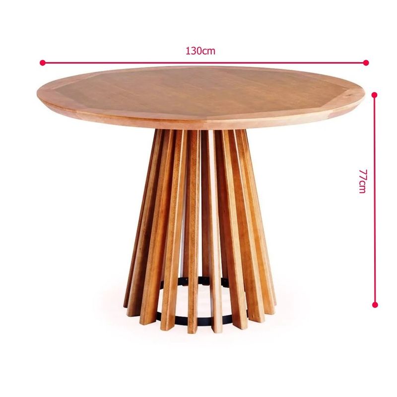 A Mesa de Jantar Brisa é a escolha ideal para quem busca aliar sofisticação, design contemporâneo e materiais de alta qualidade em um único móvel. Seu design exclusivo se destaca desde o tampo até a base, tornando-a o centro das atenções em qualquer sala de jantar.O tampo da mesa é o grande destaque visual da peça: elaborado em formato sextavado com bordas encabeçadas, traz um toque de originalidade e modernidade, fugindo do tradicional e conferindo um charme especial ao ambiente. Produzido em MDF laminado, o tampo une durabilidade, resistência e um acabamento refinado.A base da mesa, em formato de cone, é composta por ripas de madeira maciça que criam uma composição visual leve e ao mesmo tempo robusta, valorizando a textura natural da madeira e a estrutura firme da peça. O acabamento da madeira em verniz na cor mel ressalta os veios e a beleza do material, garantindo um visual acolhedor e sofisticado.Um detalhe de destaque na base é o anel metálico pintado na cor preta, que contorna a base cônica e adiciona um contraste elegante ao tom quente da madeira. Esse elemento metálico reforça o caráter contemporâneo da mesa e proporciona um toque de requinte ao conjunto.Com design marcante e materiais nobres, a Mesa de Jantar Brisa é perfeita para compor ambientes modernos, elegantes e cheios de personalidade.