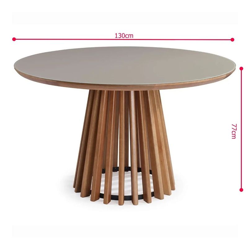 Mesa de Jantar Brisa Tampo Redondo Vidro Off White Base Verniz Mel 130cm