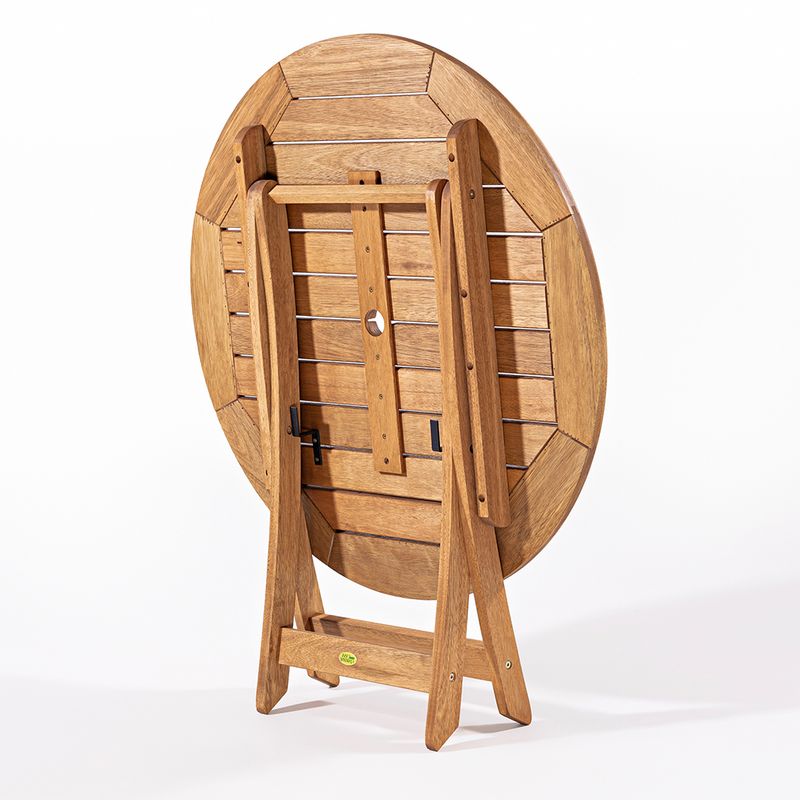 A Mesa Dobrável Redonda é uma peça curinga para quem adora receber. Com espaço ideal para até 4 pessoas, ela é perfeita para refeições ao ar livre, encontros descontraídos ou mesmo um café da tarde na varanda.Produzida em madeira Liptus, altamente resistente, sua estrutura oferece firmeza e longa vida útil mesmo em ambientes com exposição solar e umidade. O acabamento Stain Jatobá realça os veios da madeira e cria uma camada protetora que inibe o desgaste causado pelo tempo.Entre os seus principais benefícios estão o design dobrável, que facilita o transporte e a organização do espaço, e o formato redondo, que favorece a interação e proporciona conforto visual e funcional. Seu visual elegante, aliado à durabilidade, faz dela uma excelente escolha tanto para residências quanto para ambientes comerciais que desejam um toque rústico sofisticado.