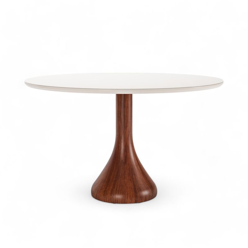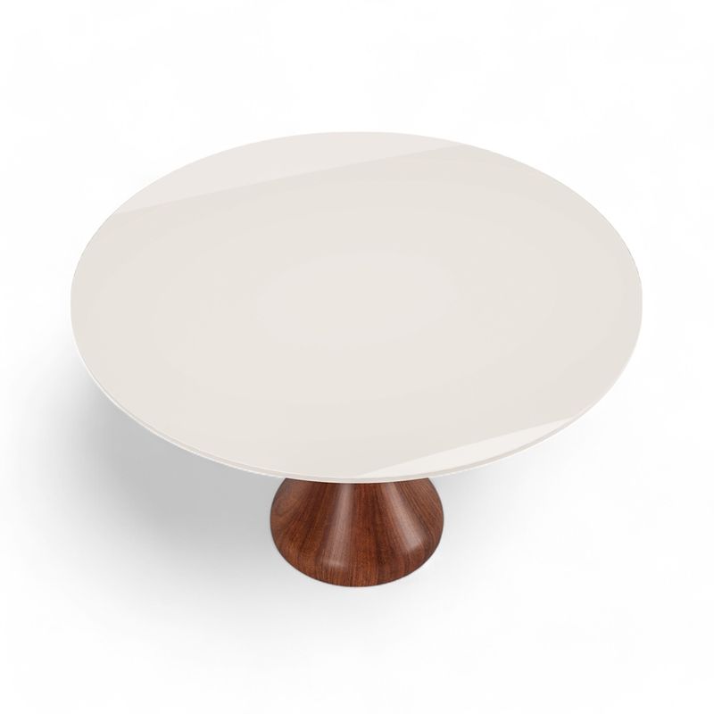 Mesa Jantar Maribela Redonda Cor Castanho Com Vidro Branco 100cm