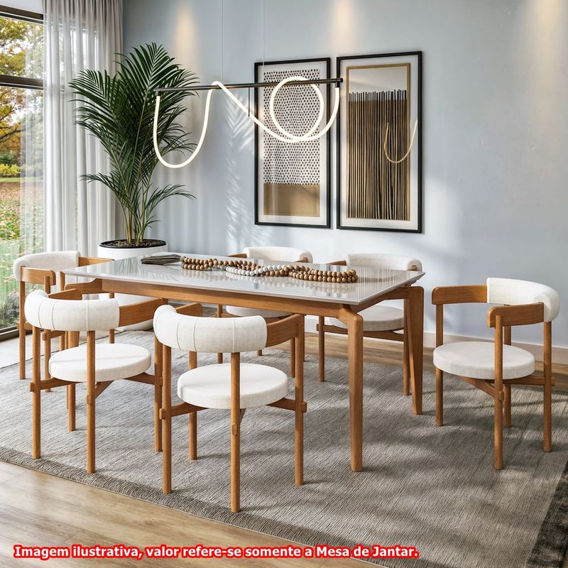 Mesa Jantar Marilac Retangular Champagne Com Vidro Off White 210cm