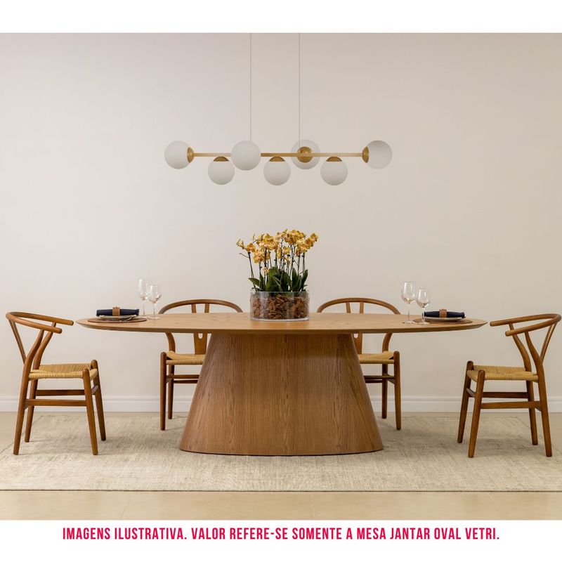 A Mesa de Jantar Vetri é sinônimo de elegância e harmonia. Seu tampo em formato oval, na sofisticada cor Off White, traz leveza e modernidade para o ambiente, criando um contraste refinado com a base oval em lâmina de madeira na cor Carvalho Amêndoa. Essa combinação de cores realça o desenho da peça e proporciona um visual equilibrado e atemporal.Com 180cm de comprimento, a Vetri acomoda confortavelmente seus convidados, sendo ideal para momentos de convívio e celebração. O formato oval do tampo favorece a circulação ao redor da mesa, tornando o ambiente mais fluido e funcional, além de oferecer um toque de suavidade ao décor da sua sala de jantar.Uma escolha perfeita para quem busca unir design contemporâneo, praticidade e bom gosto em um único móvel.
