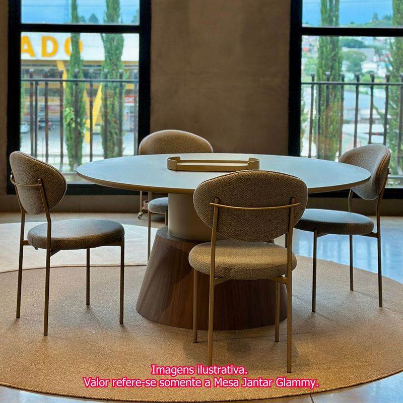 Elegância em sua forma mais compacta. A Mesa de Jantar Pricely de 120cm é perfeita para compor salas de jantar sofisticadas com espaço reduzido. Seu tampo redondo é revestido em lâmina pintada na refinada cor Bronze, coberto por vidro, garantindo resistência e brilho sutil. A base superior acompanha a mesma pintura bronze, em total harmonia visual, enquanto a base inferior traz o aconchego da lâmina de madeira na cor Nogueira