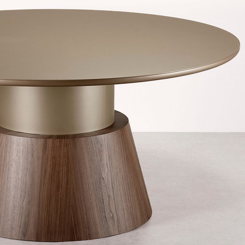 Com 140cm de diâmetro, a Mesa de Jantar Pricely oferece o equilíbrio ideal entre presença estética e funcionalidade. Seu formato redondo é perfeito para reunir até cinco pessoas de maneira confortável, mantendo a elegância como protagonista do ambiente.O tampo em lâmina pintada na sofisticada cor Champagne recebe uma camada de vidro, unindo resistência e beleza em uma peça única. A base superior acompanha o mesmo acabamento do tampo, já a base inferior, em lâmina de madeira Nogueira, confere um toque de aconchego e sofisticação.Ideal para compor salas de jantar de alto padrão, essa mesa suporta até 10kg e se torna um verdadeiro destaque na decoração.