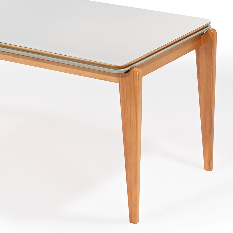 Detalhes do Produto:Tampo em Vidro na cor Off White sobre o Tampo de MDF