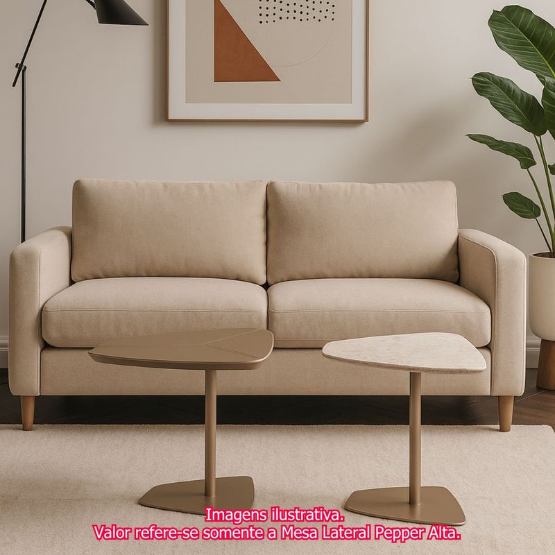 Com uma proposta estética que une materiais nobres e acabamento marcante, a Mesa Lateral Nápoles Alta é sinônimo de sofisticação. O tampo em mármore travertino é uma escolha atemporal, que confere autenticidade e naturalidade à peça, graças às suas tonalidades terrosas e superfícies irregulares que captam a luz de forma sutil.A base em aço carbono na cor Gold acrescenta um brilho refinado e atual, funcionando como contraponto ao aspecto rústico do mármore. Seu design leve, com estrutura geométrica e linhas bem definidas, proporciona estabilidade sem pesar visualmente, o que contribui para a elegância do conjunto.Pensada para composições criativas, essa mesa é ideal quando combinada com a versão baixa da linha Nápoles. Juntas, as duas alturas criam camadas visuais e permitem brincar com contrastes de textura, cor e acabamento. Uma escolha perfeita para ambientes sofisticados que valorizam a mistura entre o orgânico e o luxuoso.