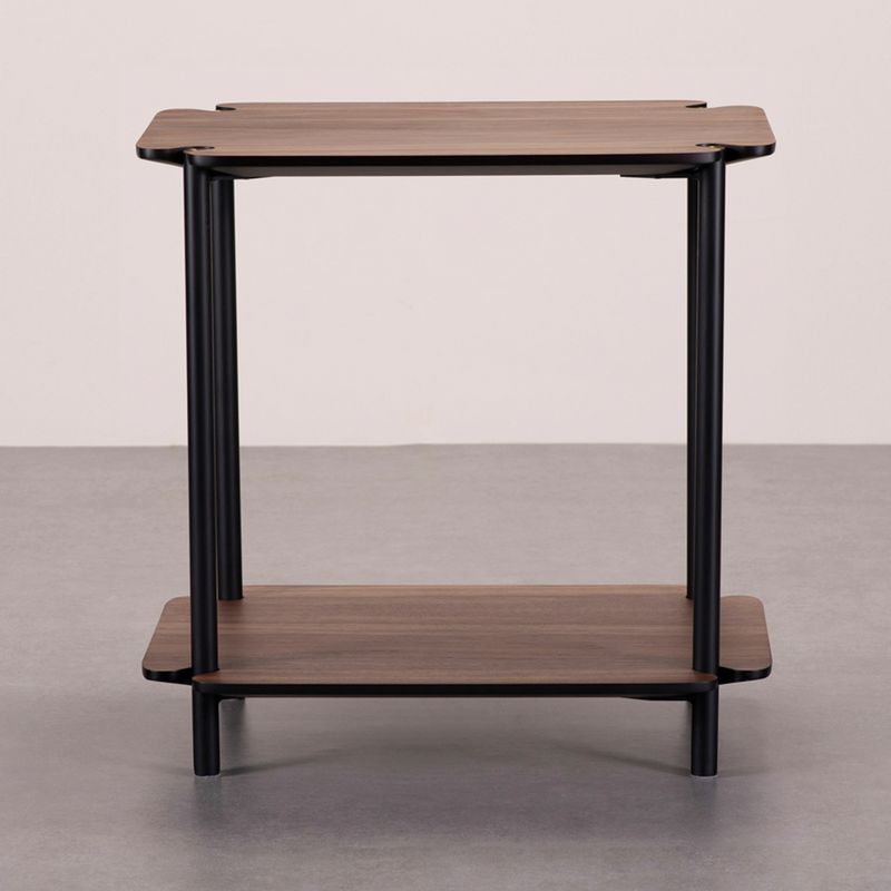 Mesa Lateral Ravena Quadrada Nogueira Haste Preto
