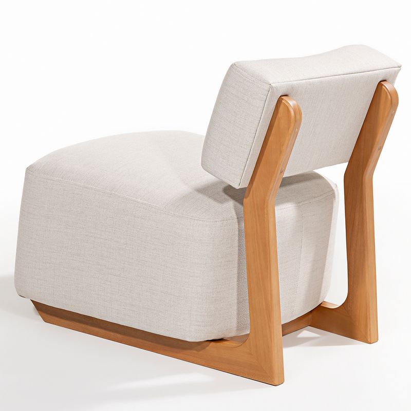 A Poltrona Clara é um convite ao conforto e à sofisticação. Seu design contemporâneo combina linhas suaves com uma estrutura robusta, criando uma peça de presença marcante e, ao mesmo tempo, acolhedora.Revestida em tecido na tonalidade Lac, um bege extremamente claro e elegante, a poltrona transmite leveza visual e se integra com facilidade a diferentes propostas de decoração. O assento generoso e inteiriço, que se estende até o chão, reforça a sensação de solidez e aconchego, perfeito para longos momentos de relaxamento.A estrutura em madeira Tauari, com acabamento em verniz na cor Mel, confere um toque natural e sofisticado. Essa base não apenas sustenta com firmeza o assento, mas também se prolonga até o encosto, levemente reclinado, proporcionando suporte ergonômico e conforto adicional. O contraste entre o tom quente da madeira e o tecido claro realça os detalhes do desenho, evidenciando a qualidade dos materiais e o cuidado nos acabamentos.Ideal para compor salas de estar elegantes, cantos de leitura ou ambientes de contemplação, a Poltrona Clara se adapta com charme tanto a espaços amplos quanto mais intimistas. Acrescente uma manta macia, uma luminária de pé com luz suave e um tapete texturizado para criar um refúgio perfeito
