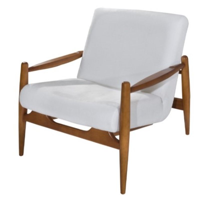 Poltrona Hand Assento Branco Base Madeira Amêndoa