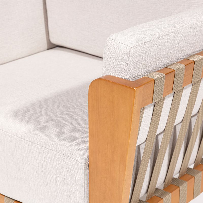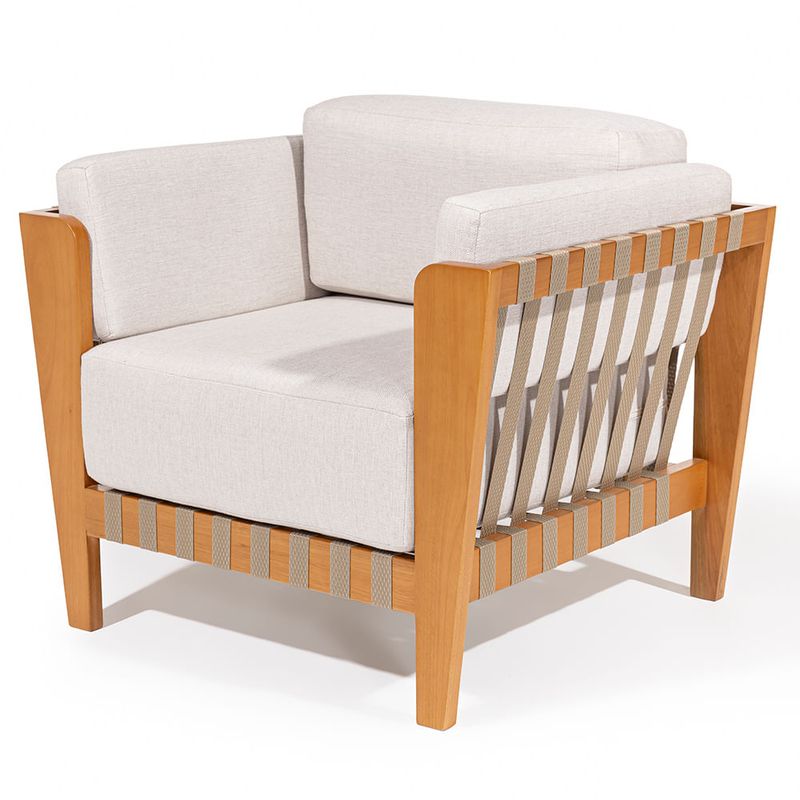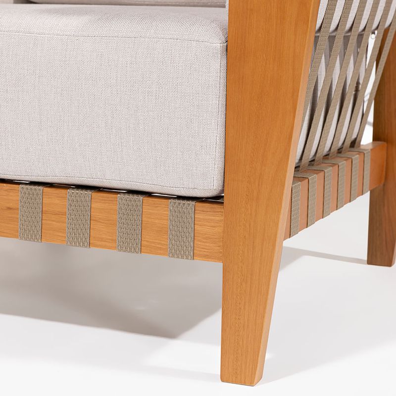 A Poltrona Sirius foi cuidadosamente desenhada para proporcionar não apenas beleza estética, mas também um elevado nível de conforto e bem-estar. Seu estofado robusto é um dos principais destaques da peça, generoso em proporções e cuidadosamente preenchido, ele convida ao relaxamento imediato, envolvendo o corpo com uma sensação de acolhimento e aconchego a cada uso. Ideal para momentos de pausa e contemplação, a Sirius se torna o ponto focal em qualquer ambiente que valorize o conforto com sofisticação.Os braços da poltrona ganham um charme especial com o detalhamento em fita de corda nautica na cor rami, que confere um toque artesanal e contemporâneo ao mesmo tempo. Esse elemento traz textura e personalidade ao design, além de evidenciar o cuidado nos acabamentos.A base e a estrutura da Poltrona Sirius são confeccionadas em madeira tauari, conhecida por sua resistência e beleza natural. Recebem acabamento em verniz na cor mel, que valoriza os veios da madeira e contribui para uma estética calorosa e elegante.Seja em uma sala de estar, varanda coberta ou ambiente de leitura, a Poltrona Sirius une funcionalidade e estilo, sendo perfeita para compor decorações com personalidade, que priorizam o conforto sem abrir mão da sofisticação.