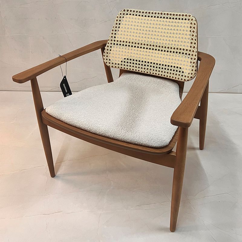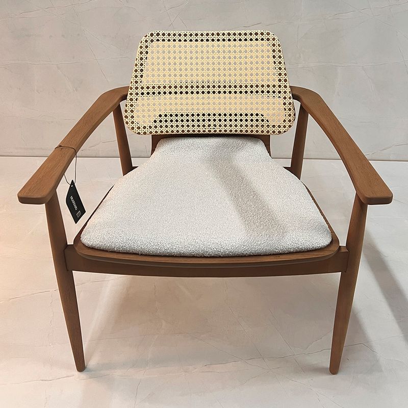 A Poltrona Vitta é uma celebração do design orgânico e da riqueza dos materiais naturais. Sua estrutura é habilmente trabalhada com a base em lâmina de carvalho amêndoa, conferindo uma fundação sólida, duradoura e um calor visual que só a madeira nobre pode oferecer. Os braços e pés, desenhados com linhas suaves e afiladas, emolduram a peça com leveza e proporcionam o suporte ergonômico ideal para o relaxamento. O grande diferencial desta peça está na combinação texturizada de seus elementos: o encosto é feito em palha natural, que traz o charme artesanal, a transparência sutil e a ventilação, conectando a poltrona a um estilo mid-century sofisticado. Em contraponto à rigidez da palha e da madeira, o assento é um convite irresistível ao toque, estofado em tecido bouclé na cor off-white. O bouclé, conhecido por sua textura encaracolada e toque macio, transforma o assento em uma nuvem de conforto, enquanto a cor off-white ilumina a peça e harmoniza perfeitamente com a tonalidade quente do carvalho amêndoa. A Poltrona Vitta, portanto, não é apenas um móvel, mas um ponto focal que adiciona conforto tátil e uma elegância atemporal a salas de estar, escritórios ou lounges de alto padrão.Disponível em outros acabamentos. Consulte-nos!