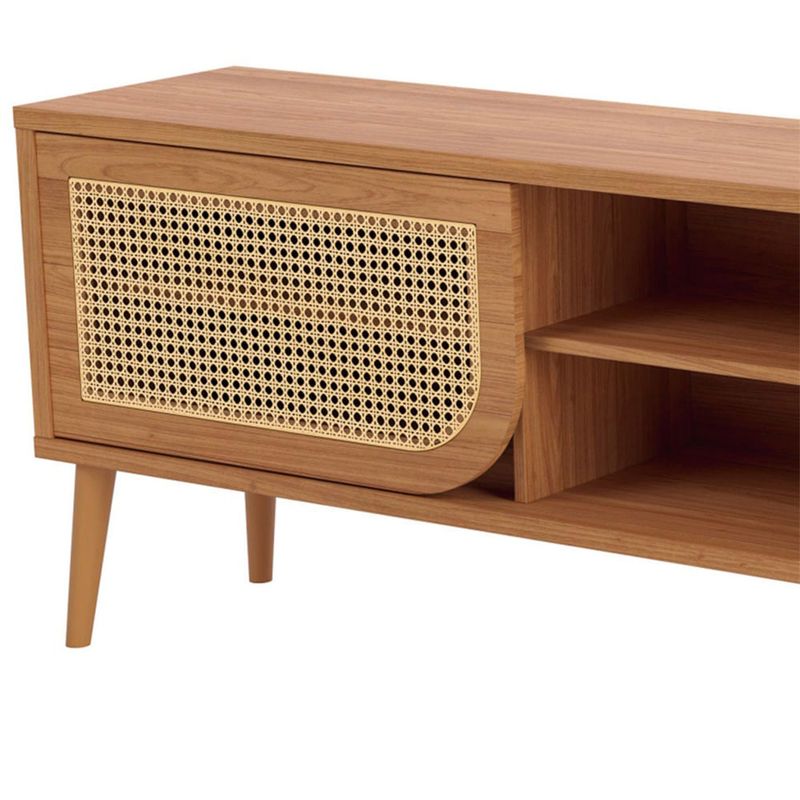 Rack Lorenço, é a peça central ideal para quem busca infundir um toque de design vintage com sofisticação em qualquer sala de estar. Este móvel não apenas suporta sua televisão, mas também se destaca como um elemento decorativo de alta qualidade e funcionalidade.A estrutura do Rack Lorenço é feita inteiramente em MDF, garantindo durabilidade e estabilidade. O acabamento na cor Freijó é um diferencial, contando com seis camadas de proteção de pintura, o que confere ao móvel uma resistência superior e um visual esteticamente refinado que perdura ao longo do tempo. Os pés em madeira maciça complementam o design retrô com uma base sólida e elegante.Com 220 cm de largura foi inteligentemente projetado para otimizar o armazenamento. Apresenta duas gavetas amplas, equipadas com corrediças telescópicas metálicas, que asseguram um deslizamento suave e silencioso, facilitando o acesso aos seus pertences. Os puxadores metálicos adicionam um contraste sutil e moderno ao estilo vintage.O ponto focal estético é a porta de correr, que exibe um belíssimo detalhe em palha sintética, conferindo leveza e um charme artesanal. A combinação desses elementos, junto com as duas prateleiras internas, cria espaços de armazenamento perfeitos para organizar consoles de jogos, equipamentos de mídia ou peças de decoração.A união perfeita entre a nostalgia do design vintage e a exigência de funcionalidade contemporânea.
