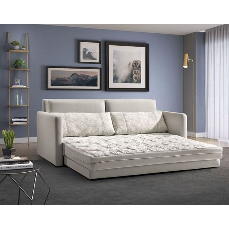 - Além de servir como um excelente estofado, este modelo pode tornar-se uma cama para casal sem complicação ou esforço algum.