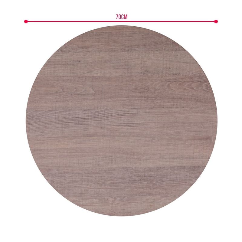 Formato: Redondo Diametro: 70 cm Material: MDP (painel de madeira de media densidade) Acabamento: Pintura na cor branca com superficie lisa e facil de limpar Indicado para: Bases metalicas, de madeira ou de ferro